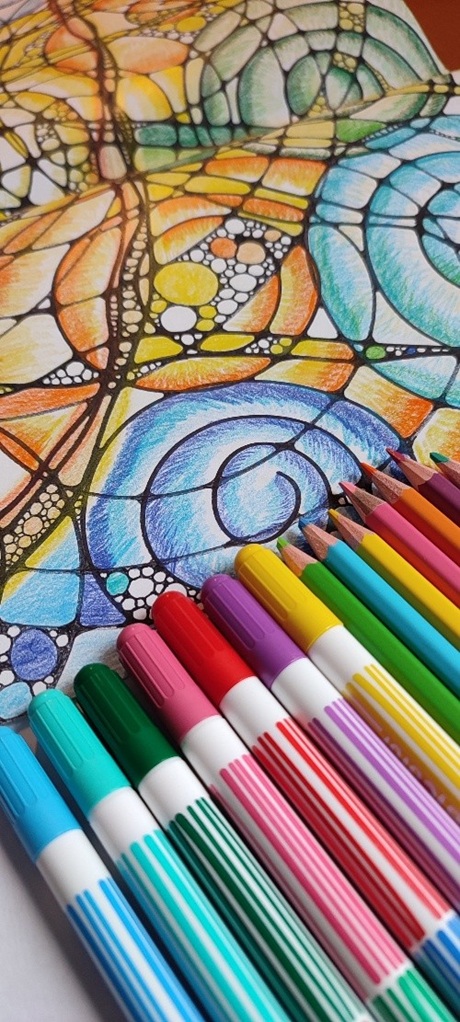 Schwinge deine Stifte, folge den Linien und Formen, tauche ein in die Welt deiner Farben, nutze beide Hände und beobachte die inneren Prozesse, die Inspiration.